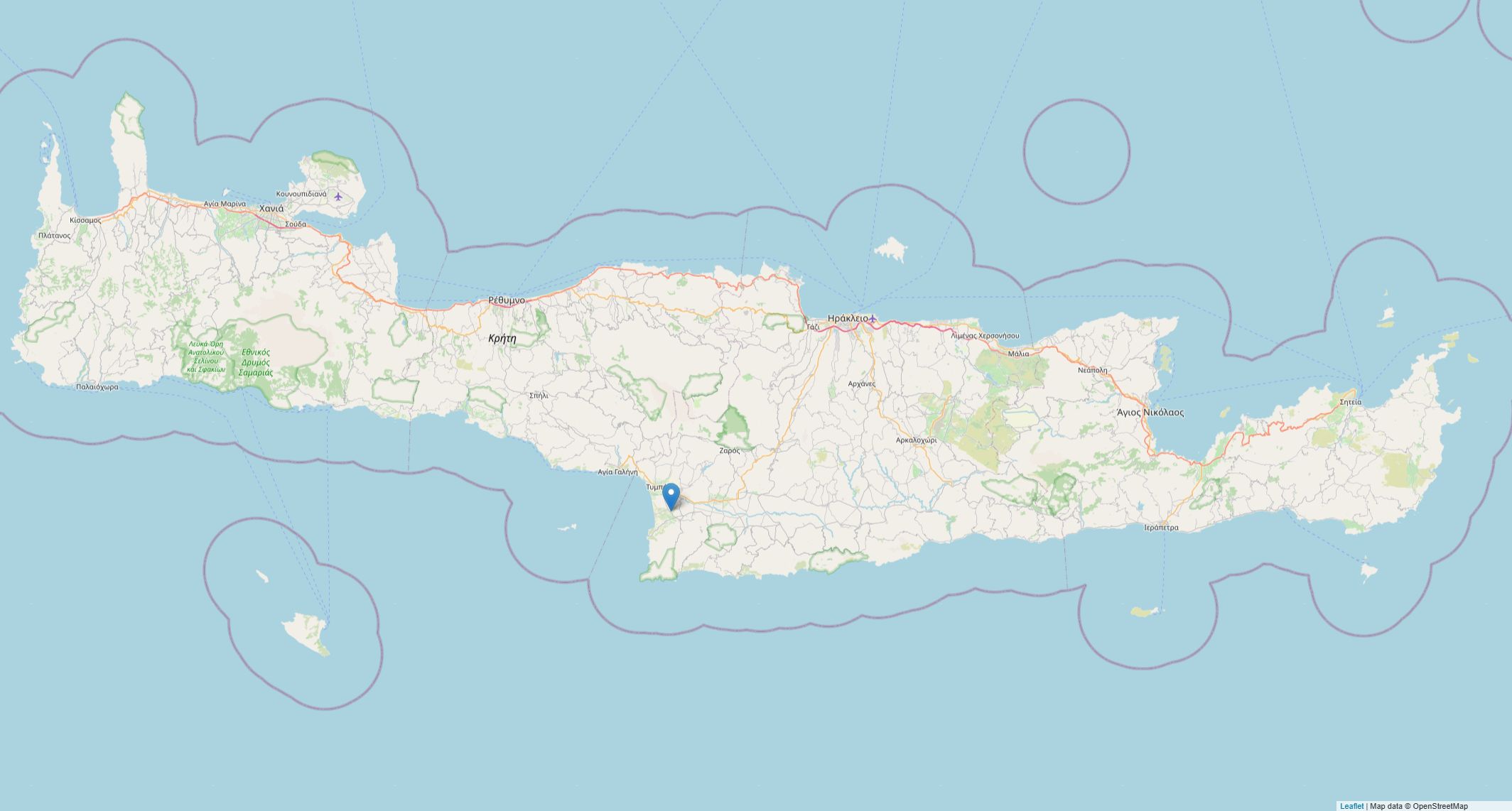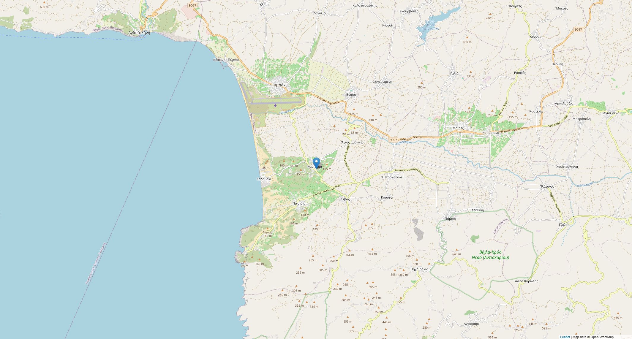 Erreichbarkeit: Matala (hippieberühmt, 10 min), Faestos (minoische Palastruine, 15 min), Kommos (uralter Strand, 10 min), Agia Galini (pittoreskes Dorf, 20 min).