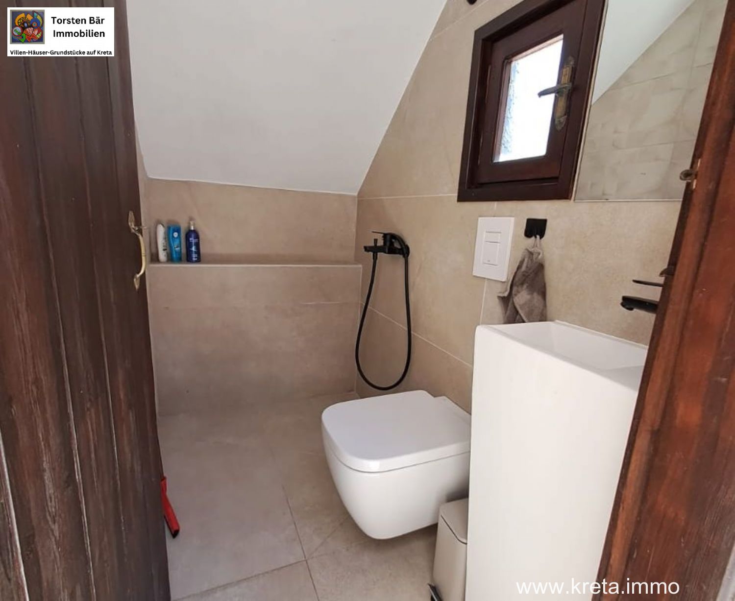 - Badausstattung: Dusche, Fenster