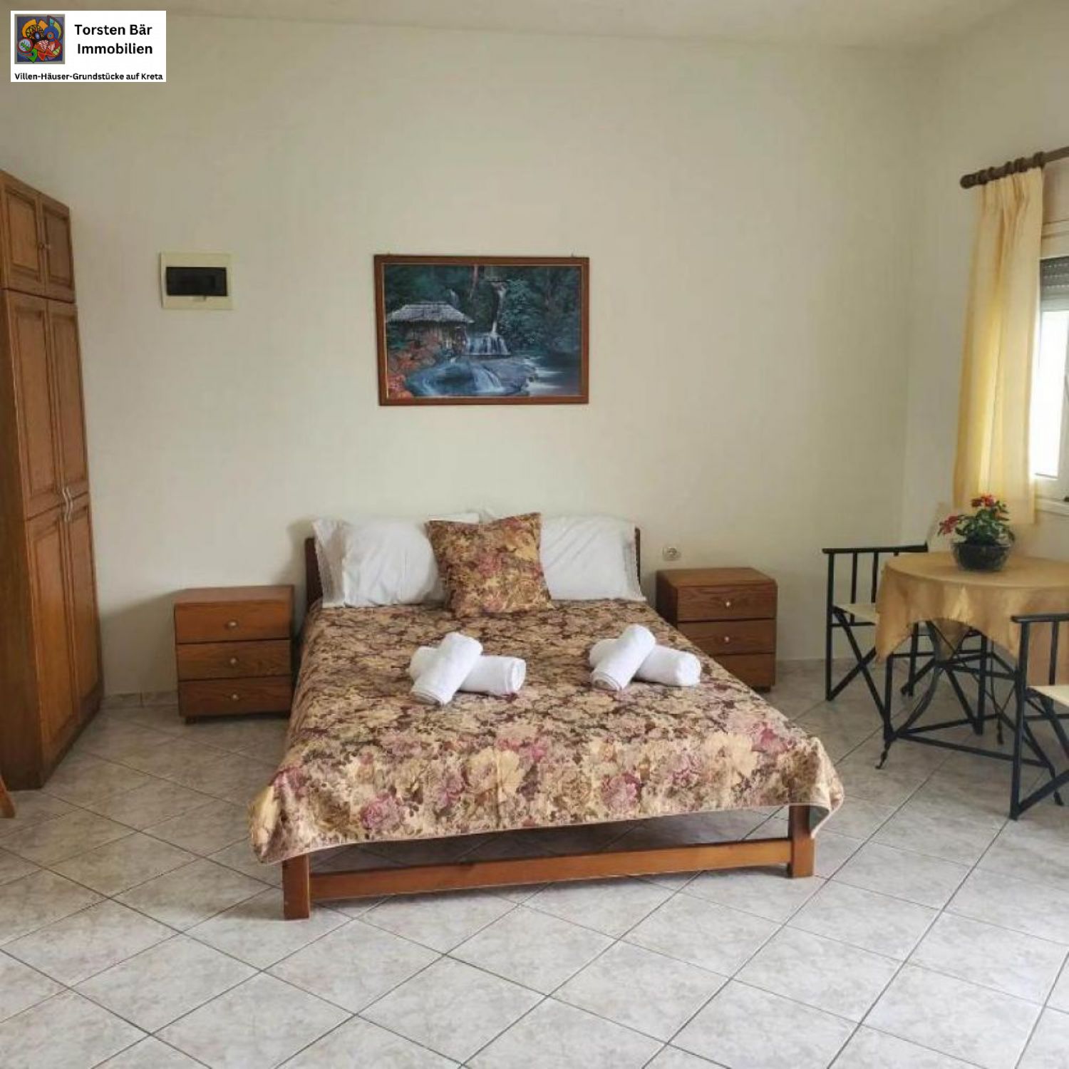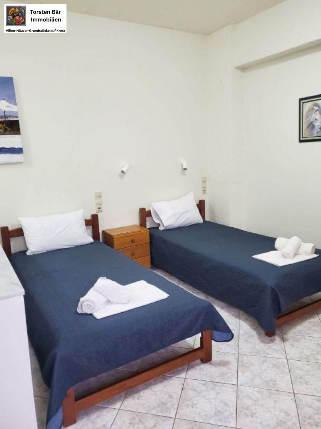Insgesamt gibt es 15 Wohnungen mit 57 Betten. Die Lage des Komplexes ist sehr gut, in einem ruhigen Ort am Meer, im Süden von Kreta, in einer schönen natürlichen Umgebung.