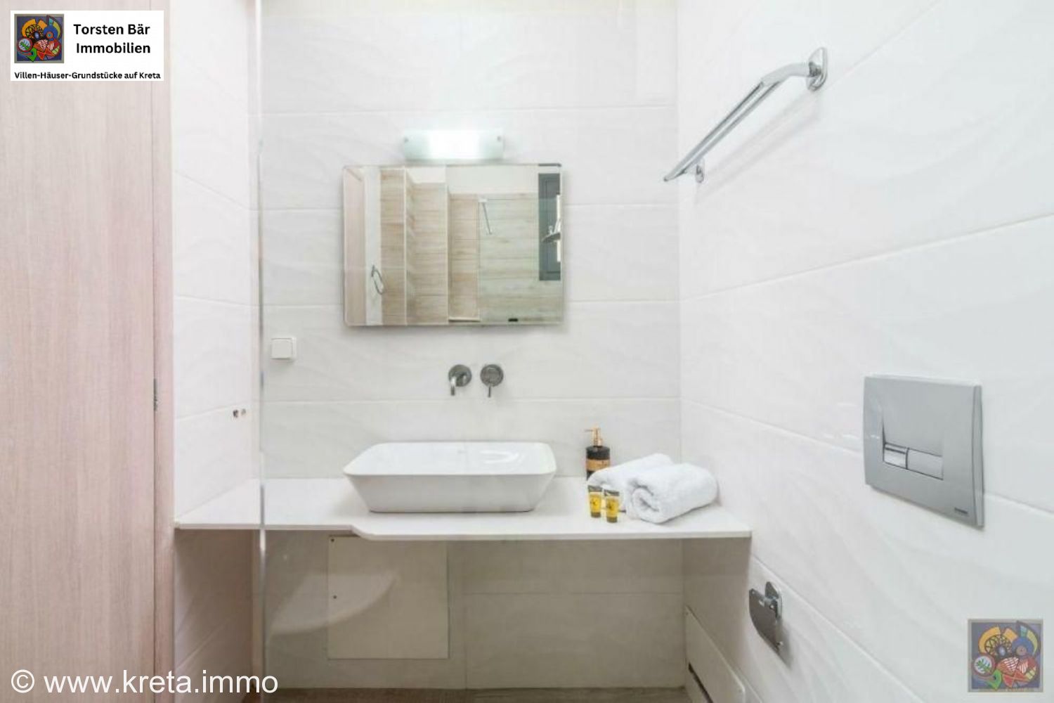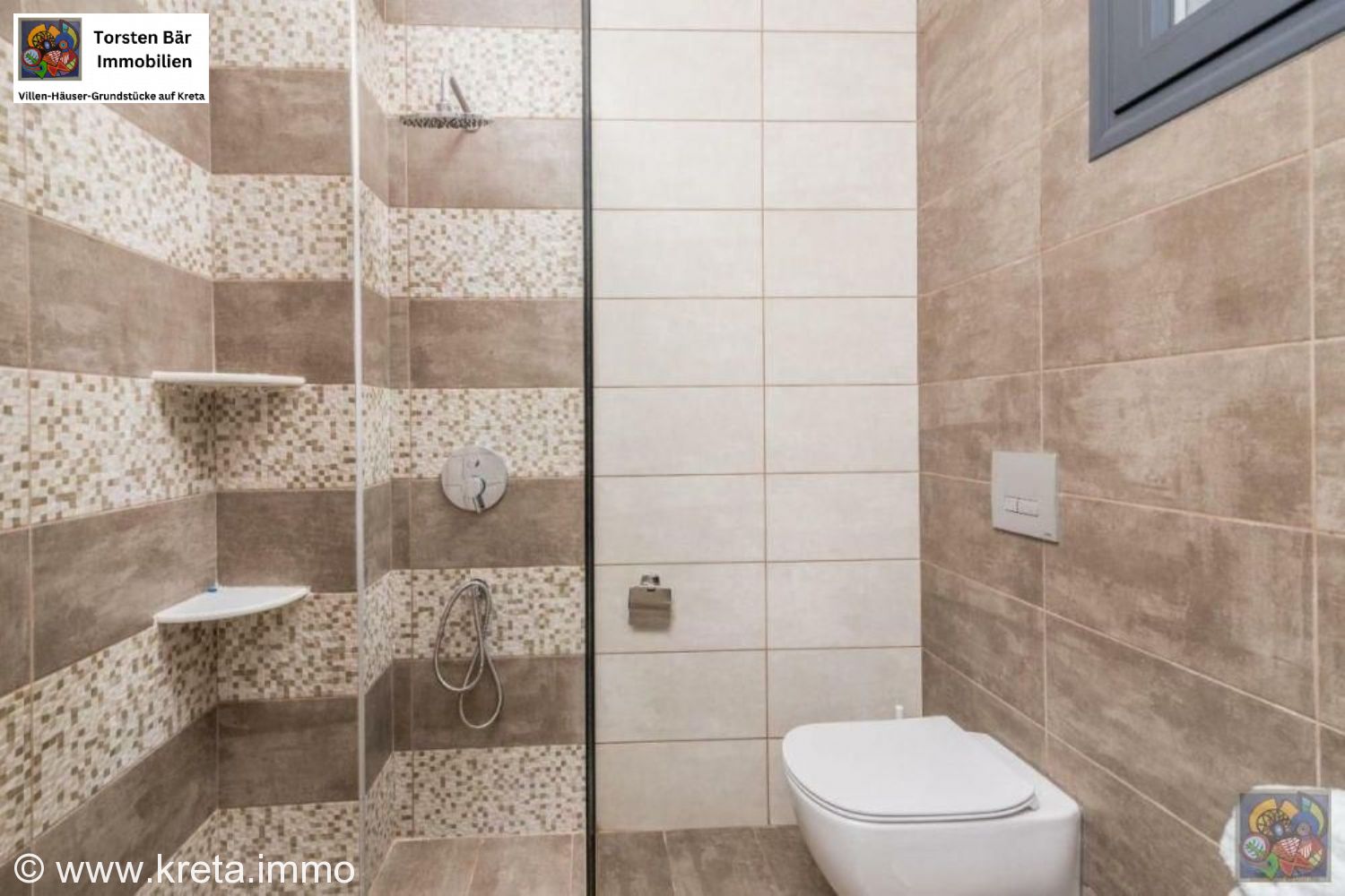 Diese luxuriöse Residenz mit Meerblick befindet sich in Kokkinos Pyrgos, nur 250 Meter vom Meer und dem Sandstrand entfernt.Die Steinresidenz besteht aus 3 Häusern, jedes mit privatem Pool.Die beiden Villen sind Maisonetten mit 2 Schlafzimmern und bieten bequem Platz für 6 Personen. Sie betreten eine große offene Küche und ein Wohnzimmer. Der Schwerpunkt liegt auf natürlichen Farben. Eine große Glasschiebetür führt auf die geräumige Terrasse und den Außenbereich mit privatem Pool. Die Küche ist mit allen notwendigen Elektrogeräten ausgestattet. Das Wohnzimmer verfügt über 2 bequeme Sofas und natürlich einen Smart-TV.Im Erdgeschoss befinden sich auch eine Gästetoilette und die Waschmaschine. Im Obergeschoss befinden sich zwei große Schlafzimmer mit Einbauschränken. Jedes der Kingsize-Schlafzimmer ist individuell in zarten Farben gestaltet und verfügt über ein eigenes, modernes Bad mit Dusche und WC. Das vordere Schlafzimmer verfügt über einen eigenen Balkon mit Blick auf das Meer und den Pool. Das zweite Schlafzimmer und der hintere Balkon bieten einen herrlichen Blick auf die Berge. Der Außenbereich umfasst eine große Fläche von 40 Quadratmetern. Es gibt eine gemütliche Terrasse mit Gartenmöbeln und einen privaten Swimmingpool von 30 Quadratmetern.