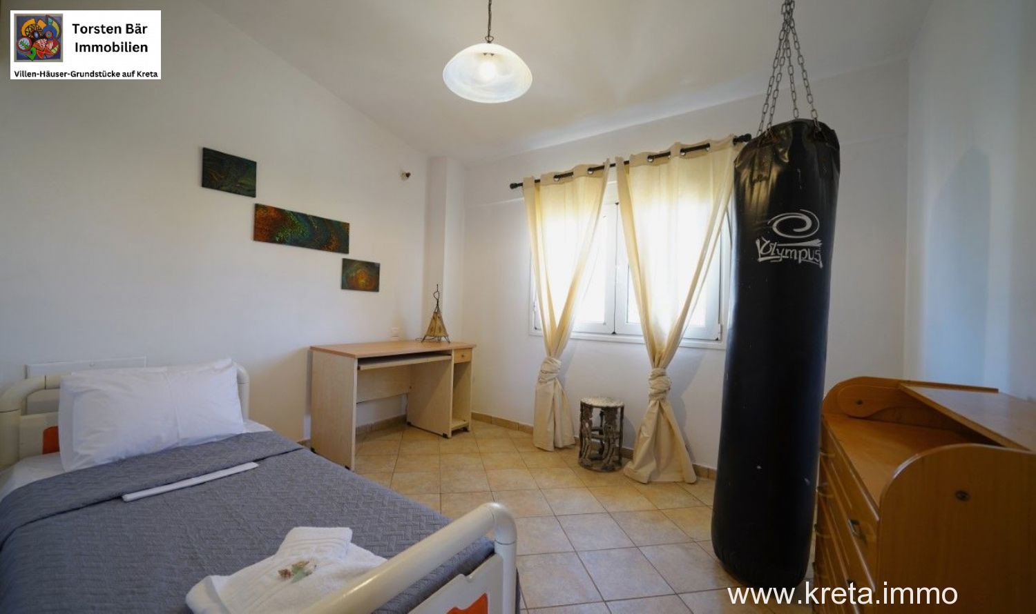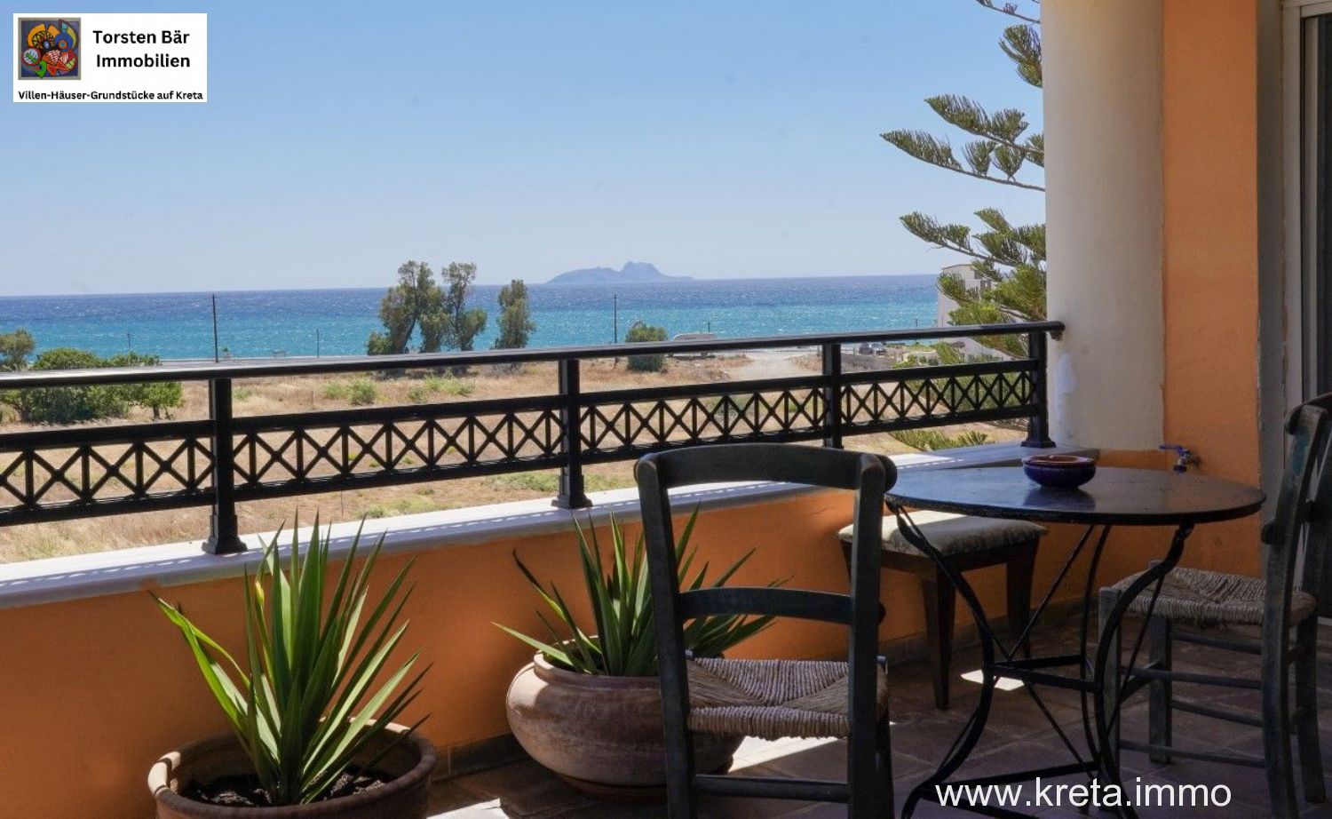 Eine große, voll ausgestattete Küche mit einer Speisekammer und einer Terrassentür zum Balkon mit fantastischem Panoramablick auf das Meer und den Sonnenuntergang. Ein Doppelschlafzimmer mit Einbauschränken und Terrassentür zum Balkon mit fantastischem Meerblick. Auch ein kleines charmantes Badezimmer mit Dusche. Über eine Holztreppe gelangt man in die obere Etage, wo sich ein Hauptschlafzimmer mit fantastischem Meerblick, Einbauschränken, Klimaanlage, großen Fenstern und einer Terrassentür zu einem Balkon mit Blick auf das libysche Meer befindet, auf dem man den Sonnenuntergang an der Südküste genießen kann.