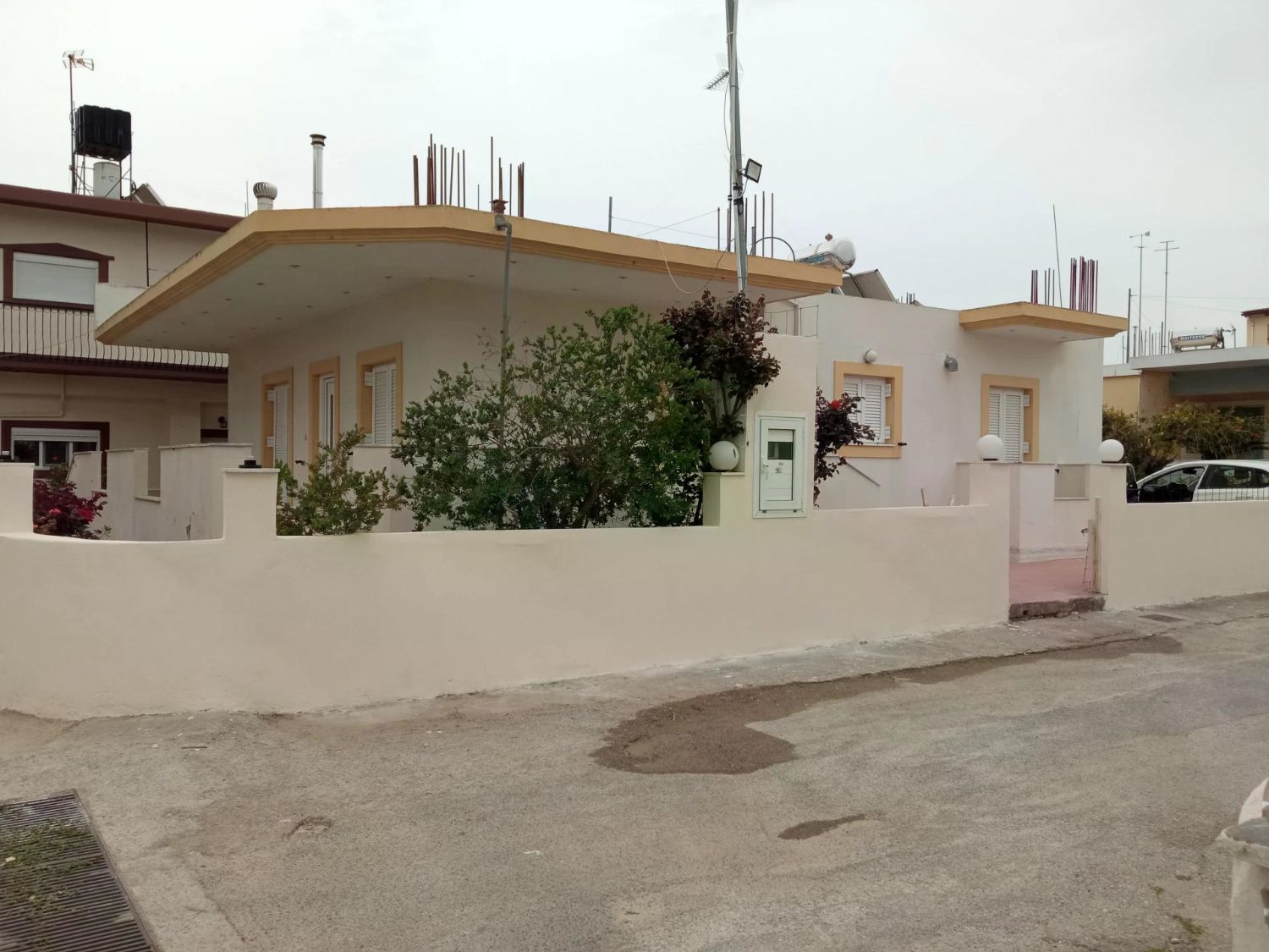 Unter dem Erdgeschoss verbirgt sich ein 43 m² großes Untergeschoss, das derzeit als geräumiger Lagerraum genutzt wird. Gefliest und frisch gestrichen, beherbergt es den Ölbrenner der Zentralheizung mit Heizkörpern – perfekt für milde Wintertage. Hier lagern Sie Werkzeug, Saisonkleidung oder Weinflaschen; mit etwas Fantasie wird daraus ein Home-Office, Fitnessraum oder Gästezimmer. Und die Restbaufläche von ca. 60 m² im ersten Stock? Ein Traum für Erweiterungen: Bauen Sie ein Master-Badroom, ein Büro mit Meerblick oder eine Dachterrasse – alle Genehmigungen sind vorhanden, die Baukosten überschaubar.