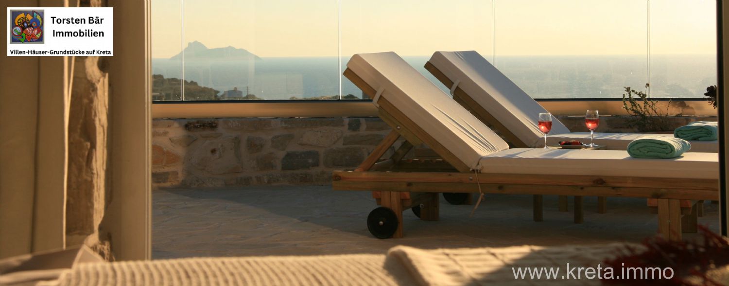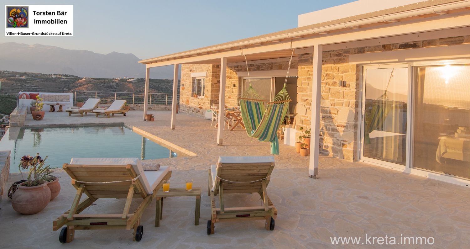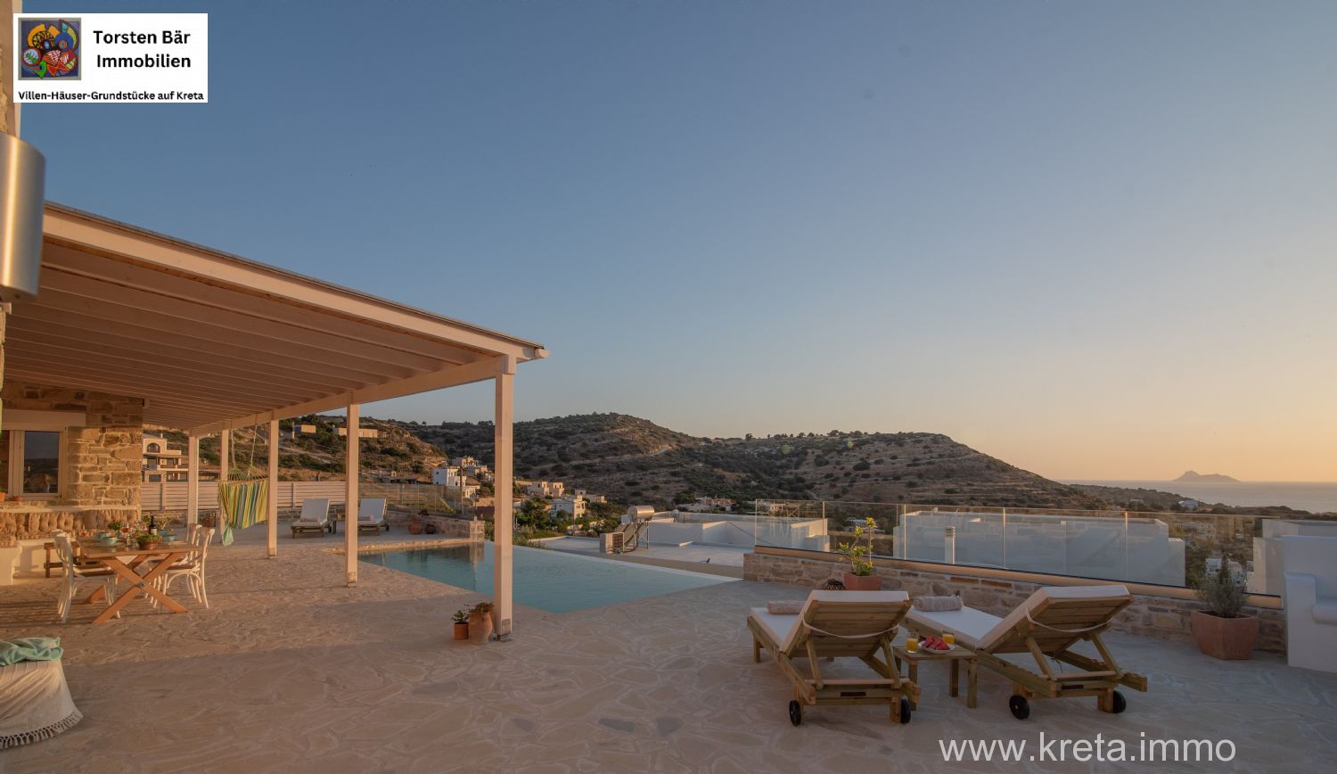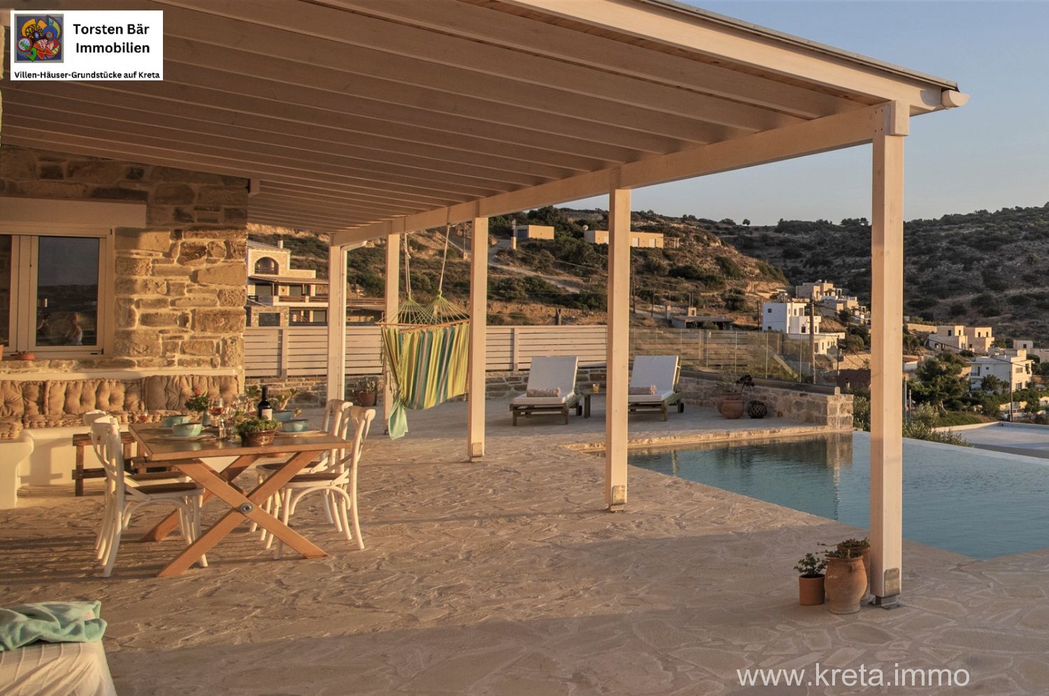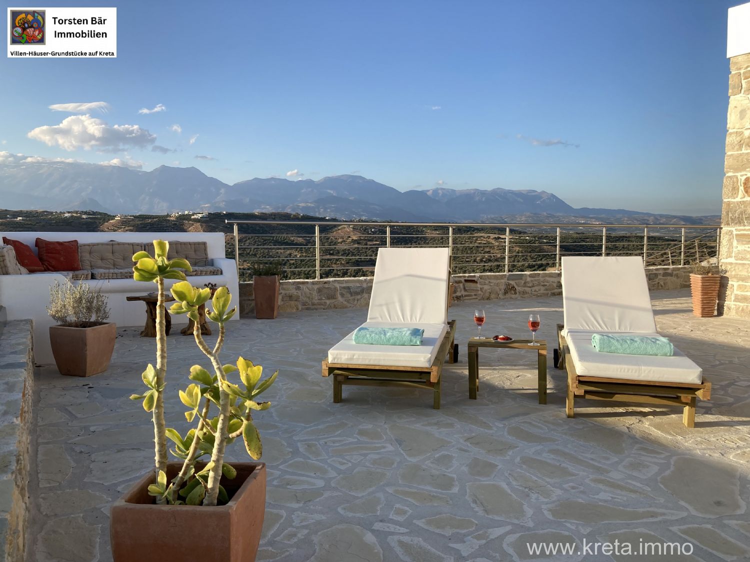 Das Alleinstellungsmerkmal dieser Villa ist die fantastische Lage, mit einen atemberaubenden Blick auf das Libysche Meer (inkl. Sonnenuntergang), den Psiloritis sowie bis weit in die Messara Ebene hinein. Traumhafte Sonnenauf- und Sonnenuntergänge runden die wundervolle Aussicht ab. Die Villa verfügt über eine Gebäudefläche von 240m² auf einem gepflegtem Grundstück von 1.166m²
