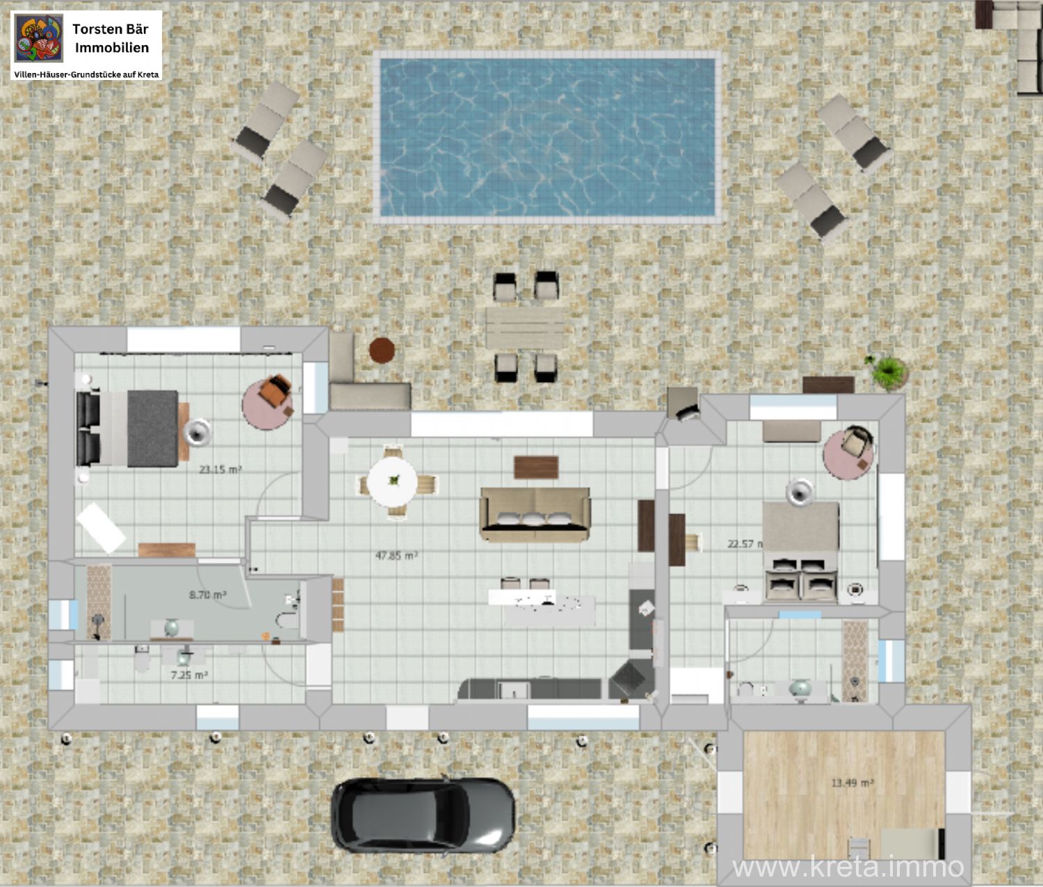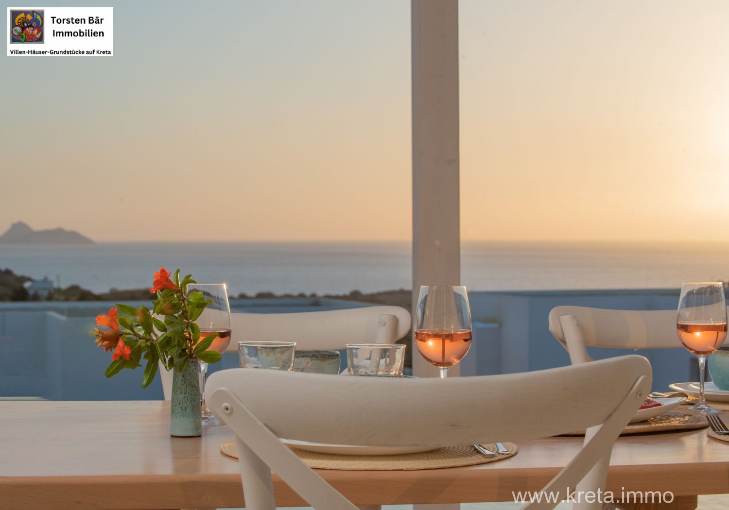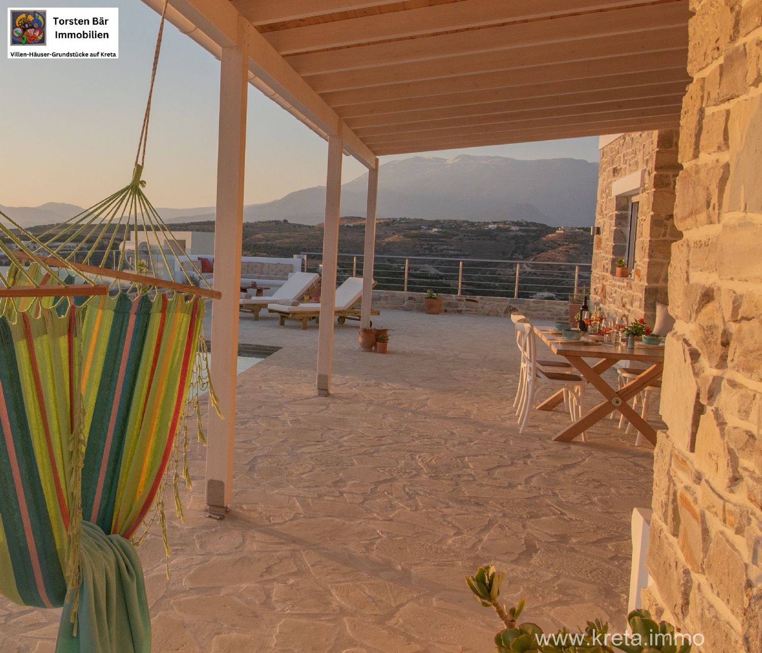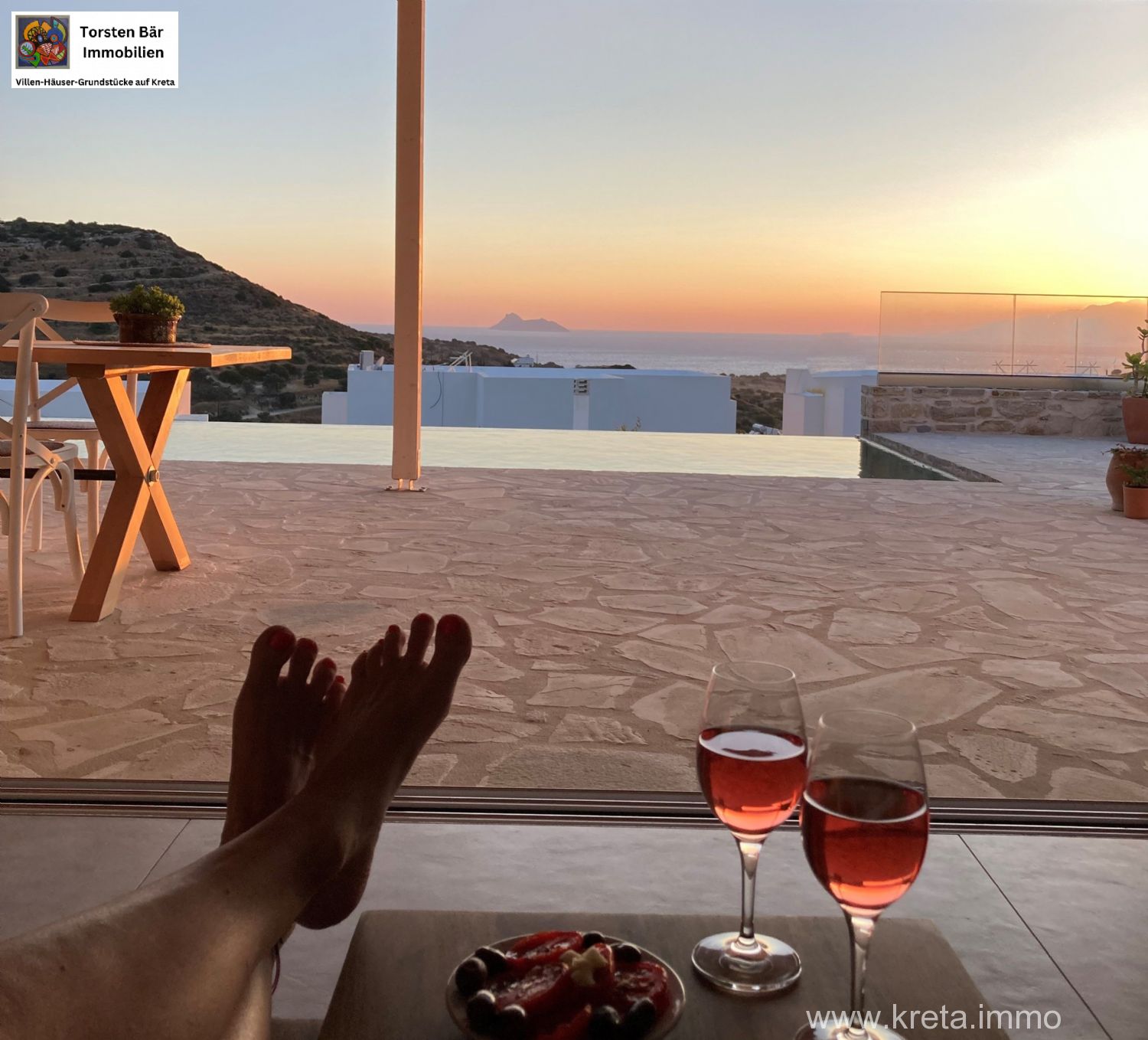 Das Alleinstellungsmerkmal dieser Villa ist die fantastische Lage, mit einen atemberaubenden Blick auf das Libysche Meer (inkl. Sonnenuntergang), den Psiloritis sowie bis weit in die Messara Ebene hinein. Traumhafte Sonnenauf- und Sonnenuntergänge runden die wundervolle Aussicht ab. Die Villa verfügt über eine Gebäudefläche von 240m² auf einem gepflegtem Grundstück von 1.166m²