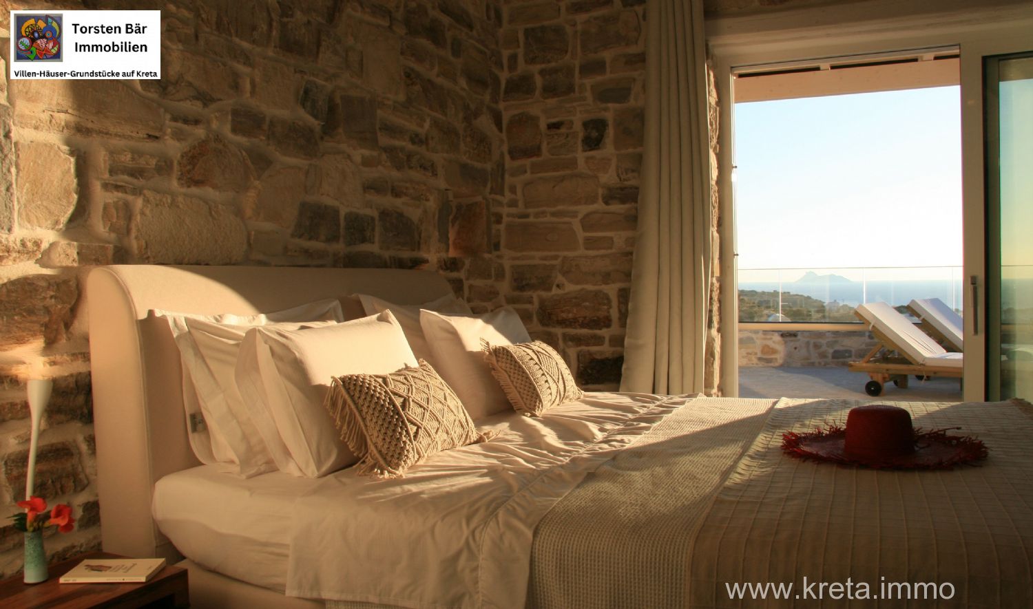Schlafzimmer: Die geräumigen Schlafzimmer bieten einen ungehinderten Meerblick und direkten Zugang zur Terrasse. Sie verfügen über eigene, luxuriöse Duschbäder.