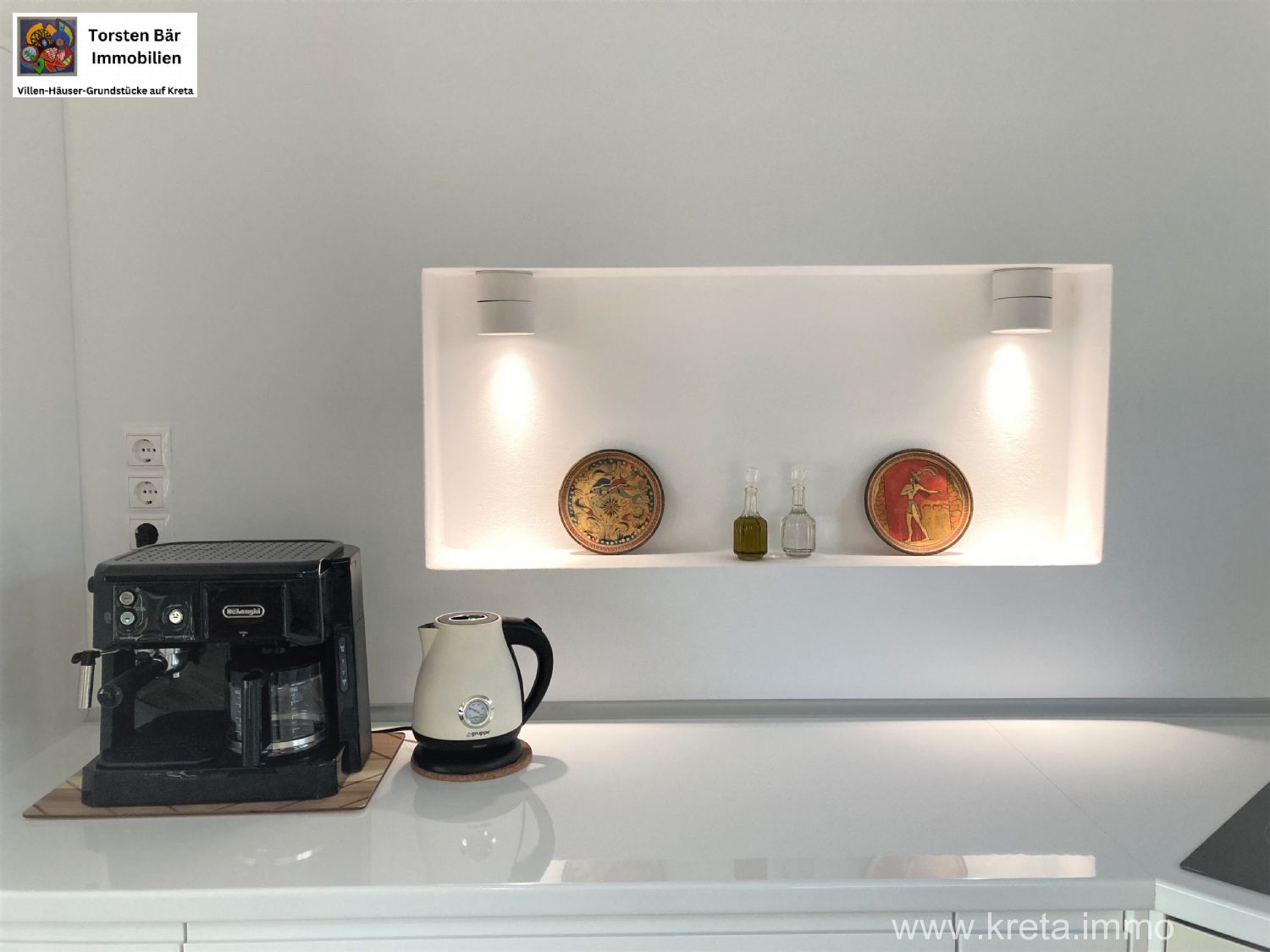 Offener Wohn-Küchenbereich: Dieser lichtdurchflutete Bereich bietet einen atemberaubenden Meerblick und ist mit hochwertigen Materialien und Ausstattung ausgestattet. Eine moderne Kücheninsel mit integrierten Steckdosen und einer innovativen Müllschublade mit Zug- und Drucköffnung erleichtert das Kochen.