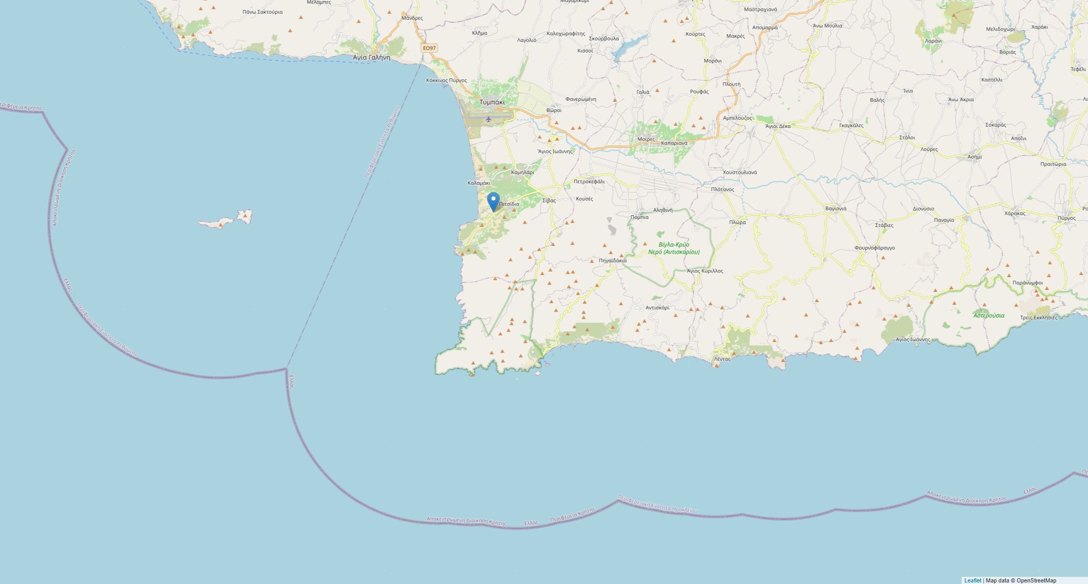 10 km Mires (große Einkäufe), 67 km Heraklion-Flughafen (1 Std.).